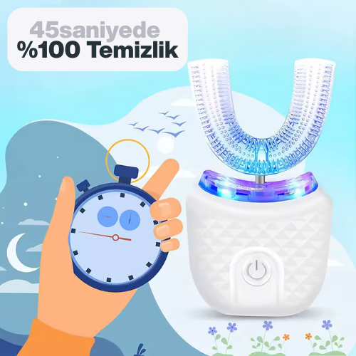 Günün nasıl başladığı fark etmez; Brush360 Halo, 45–60 saniyelik kısa bir rutinle dişlerini aynı anda sarar ve tutarlı temas sağlar. Suya dayanıklı gövde, gıda sınıfı yumuşak silikon U başlık ve 3 mod (Hassas / Standart / Parlatma) ile hem konforlu hem hızlıdır. USB-C ile şarj olur; tezgâhta şık, çantada hafiftir.